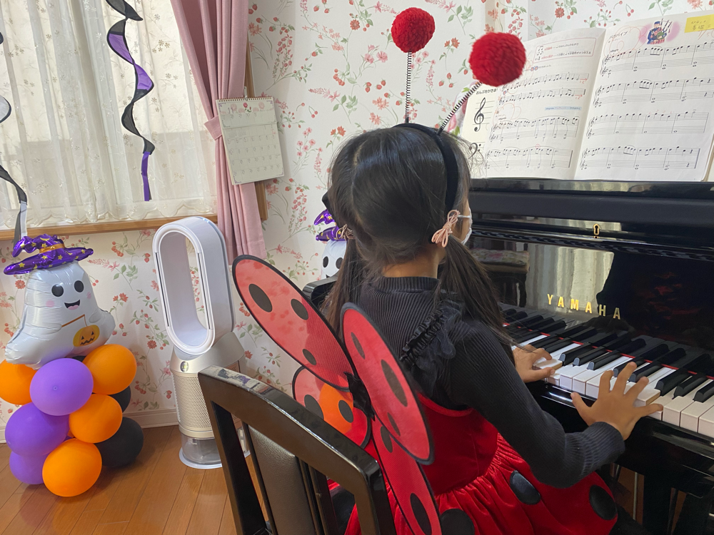 10月の教室行事と言えば!ハロウィンですね🎃🎃 今年も、ハロウィンウィークでは、「お菓子すくいゲーム」を行いました。 教室内も、生徒さんがウキウキした気持ちで来られるよう、ハロウィンの飾り付けをしました。 生徒さん達は、それぞれ趣向を凝らしたいでたちでレッスンに来てくださいました。 ピアノ教室では、季節のイベントも大切にしています。